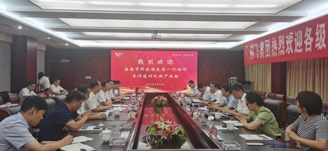 8月30日下午,市第15批科技鎮(zhèn)長團部分成員在團長、海安市人民政府副市長馬小飛的帶領下走訪調研建材機械產業(yè)鏈,市建材機械產業(yè)鏈黨委書記、市人社局副局長鐘曉衛(wèi),大公鎮(zhèn)黨委書記金山存、副鎮(zhèn)長曹陽等相關領導參加活動,市建材機械業(yè)協會(商會)秘書長王海軍、副秘書長賁道林、吳志權陪同調研。